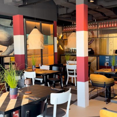 Im 1. OG findet ihr unser Restaurant. Hier könnt ihr im Sommer die offene Cabrio-Terrasse genießen.