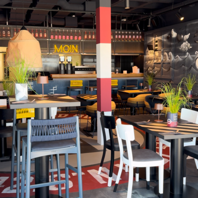 Nebenan im Erdgeschoss gibt es für alle, die schnell wieder an den Strand wollen, aus der Ahoi Frittenbude (April bis Oktober) unsere leckeren Fritten Henssler Style, Fish’n’Chips und eine kleine Getränkeauswahl.