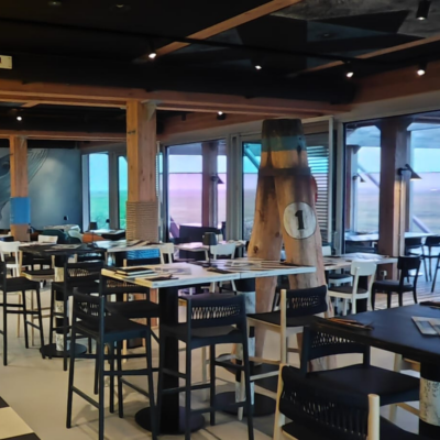 Das Ahoi begeistert seit 2017 mit urbanem Hafenflair und richtig leckerem Essen – Kaum ein Standort passt dazu besser als das neu eröffnete Erlebnis-Hus in St. Peter-Ording. Im 4.OG (Aufzug vorhanden) serviert unsere Crew Klassiker wie Fish’n’Chips, Burger und Sushi-Bowls. Von der herrlichen Terrasse aus blickt ihr bei Aperol Spritz oder Steffen’s Pflaumenkick auf die Nordsee und könnt die Seele baumeln lassen.